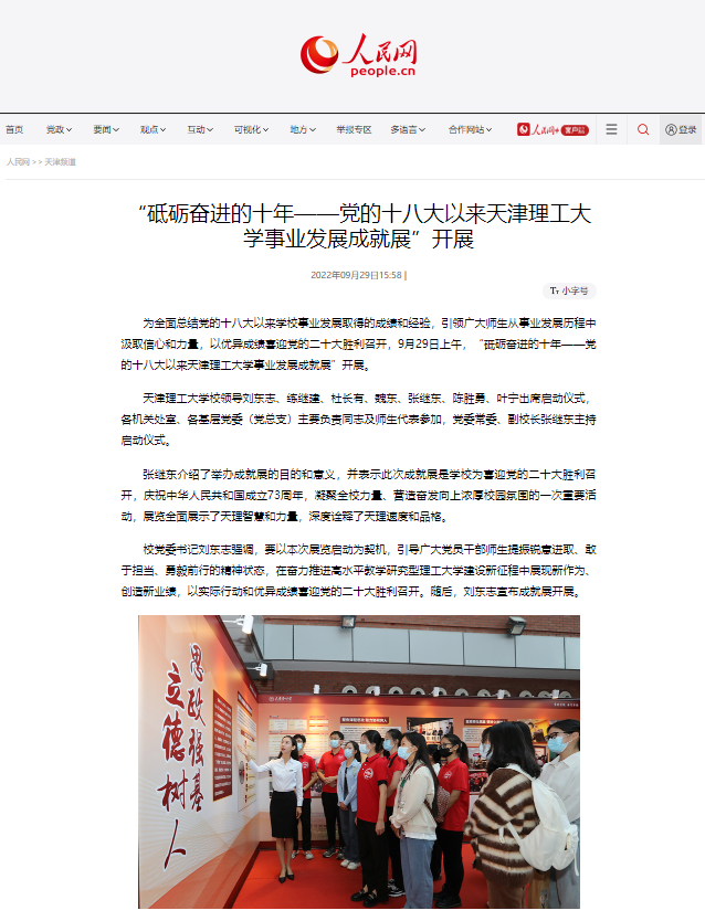 為全面總結黨的十八大以來學校事業發展取得的成績和經驗,引領廣大師生從事業發展歷程中汲取信心和力量,以優異成績喜迎黨的二十大勝利召開,9月29日上午,“砥礪奮進的十年——黨的十八大以來天津理工大學事業發展成就展”開展。