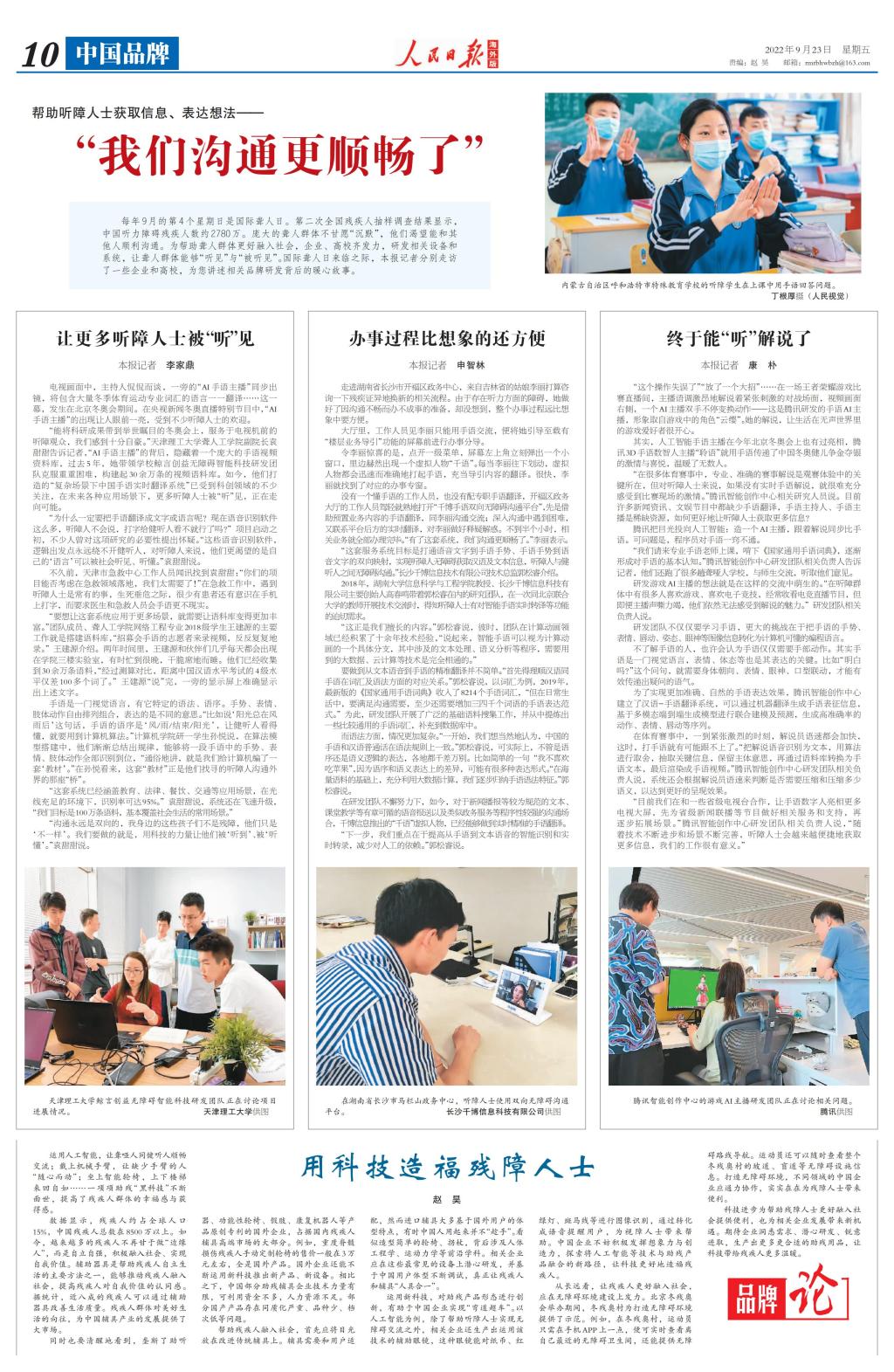 “能將科研成果帶到舉世矚目的冬奧會上,服務于電視機前的聽障觀眾,我們感到十分自豪?!碧旖蚶砉ご髮W聾人工學院副院長袁甜甜告訴記者,“AI手語主播”的背后,隱藏著一個龐大的手語視頻資料庫,過去5年,她帶領學校鯨言創益無障礙智能科技研發團隊克服重重困難,構建起30余萬條的視頻語料庫。如今,他們打造的“復雜場景下中國手語實時翻譯系統”已受到科創領域的不少關注,在未來各種應用場景下,更多聽障人士被“聽”見,正在走向可能。