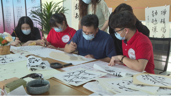 在天津理工大學,學生活動室里分外熱鬧。為了慶祝雙節,同學和老師們一起揮毫潑墨,創作書法,一筆一劃之間,書寫的是老師們桃李芬芳的育人之路,也是同學們對師恩的感念之情。