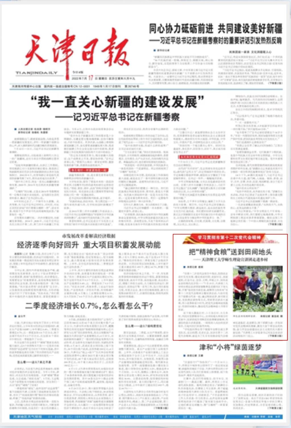 “市第十二次黨代會報告中指出,堅持農(nóng)業(yè)農(nóng)村優(yōu)先發(fā)展,建設(shè)美麗田園、美麗村莊、美麗庭院,打造興業(yè)、宜居、文明、幸福之鄉(xiāng),加快農(nóng)業(yè)農(nóng)村現(xiàn)代化步伐……”7月15日,天津理工大學(xué)師生理論宣講團(tuán)冒著酷暑走進(jìn)薊州區(qū)下窩頭鎮(zhèn),開展“奮進(jìn)擔(dān)當(dāng)鑄忠誠,凝聚偉力向未來”市第十二次黨代會精神主題宣講活動,與農(nóng)村黨員干部群眾代表一起,通過現(xiàn)場宣講、面對面交流、發(fā)放理論讀物等方式,用家常話講活大道理,用小故事彰顯大時代,把黨代會精神送到基層、傳到田間地頭,推動黨代會精神進(jìn)入尋常百姓家。