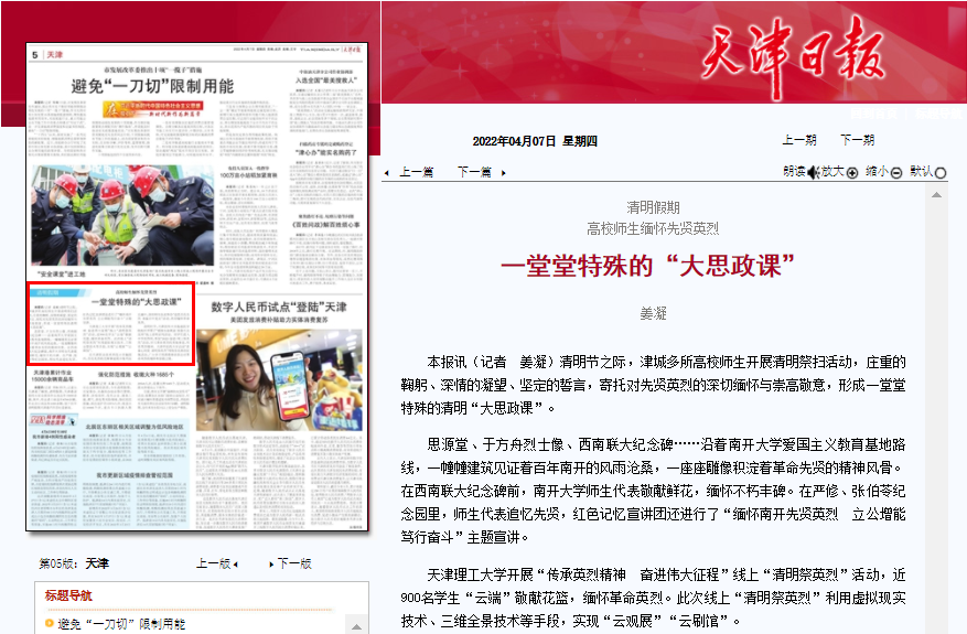 清明節(jié)之際,津城多所高校師生開展清明祭掃活動,莊重的鞠躬、深情的凝望、堅定的誓言,寄托對先賢英烈的深切緬懷與崇高敬意,形成一堂堂特殊的清明“大思政課”。
