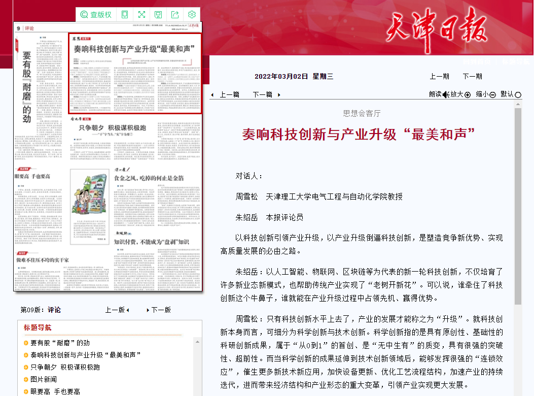 周雪松:企業是聯結科技進步、產業發展和經濟增長的紐帶,也是創新的重要主體。企業掌握資金、技術、人才、管理、知識、數據等創新要素,有著天然的創新動力,我們應該創造更好條件讓企業發揮作用。近年來,天津持續壯大科技型企業底盤,統籌推進高新技術企業倍增行動和高成長企業梯度培育,雛鷹、瞪羚等各類高新技術企業逐漸成長為引領行業進步的關鍵力量。同時,還圍繞產業發展重點任務,聚焦企業創新需求,積極整合國家和我市優質資源,推動產學研用深度融合,讓企業成為關鍵核心技術攻關的重要參與者。結合產業需要、企業需求,健全公共科技服務平臺,完善科技重大專項實施機制等,都是為了推動企業成為創新要素集成、科技成果轉化的生力軍,讓創新創造源泉充分涌流。