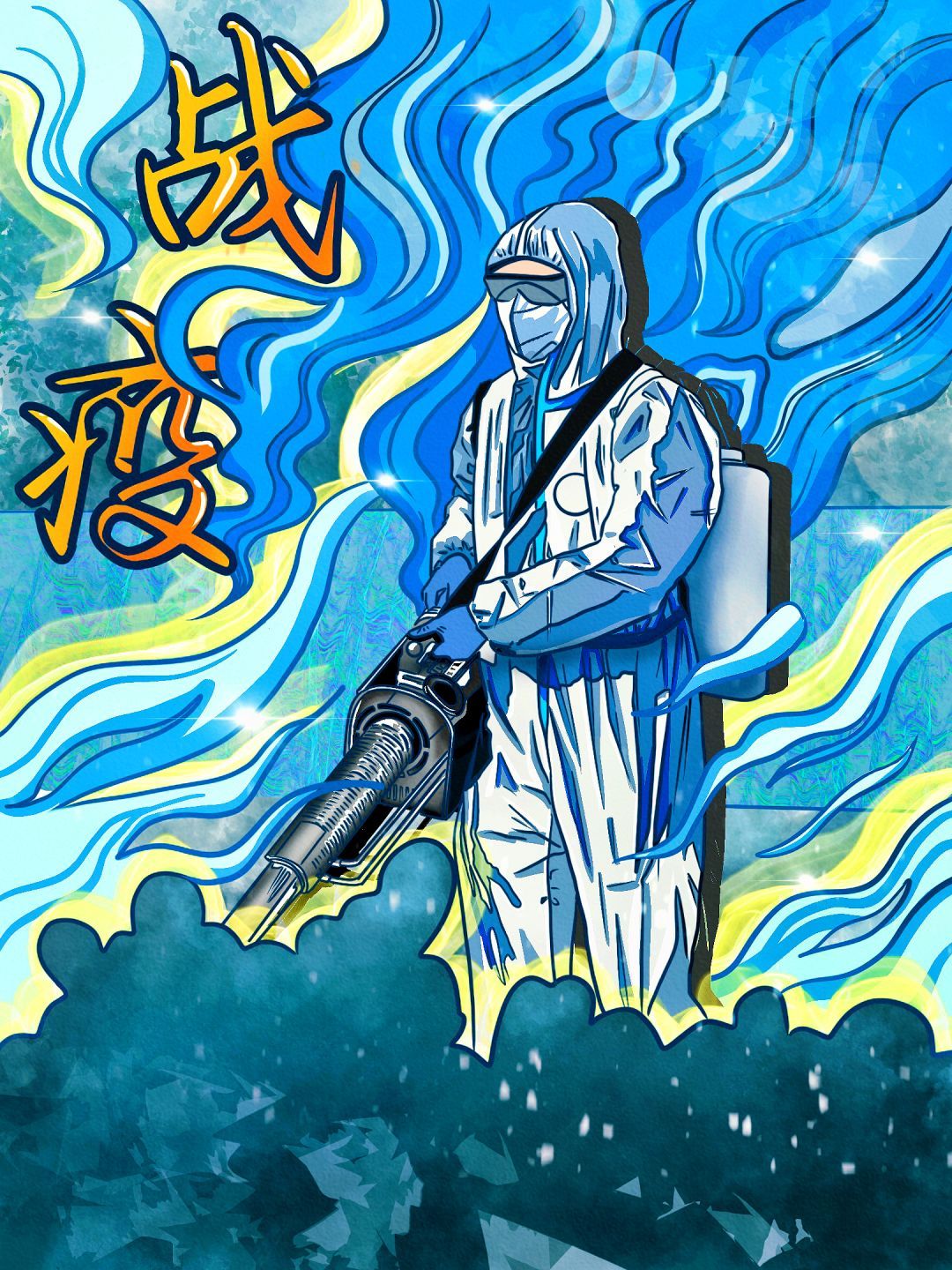 作品描繪了一名一線工作者,身披微光,消殺的不僅是病毒,還有人們心中對(duì)疫情的恐懼,表達(dá)了我們所有人都應(yīng)該發(fā)光發(fā)熱,用點(diǎn)點(diǎn)微光匯聚成星河,驅(qū)散疫情下的陰霾。