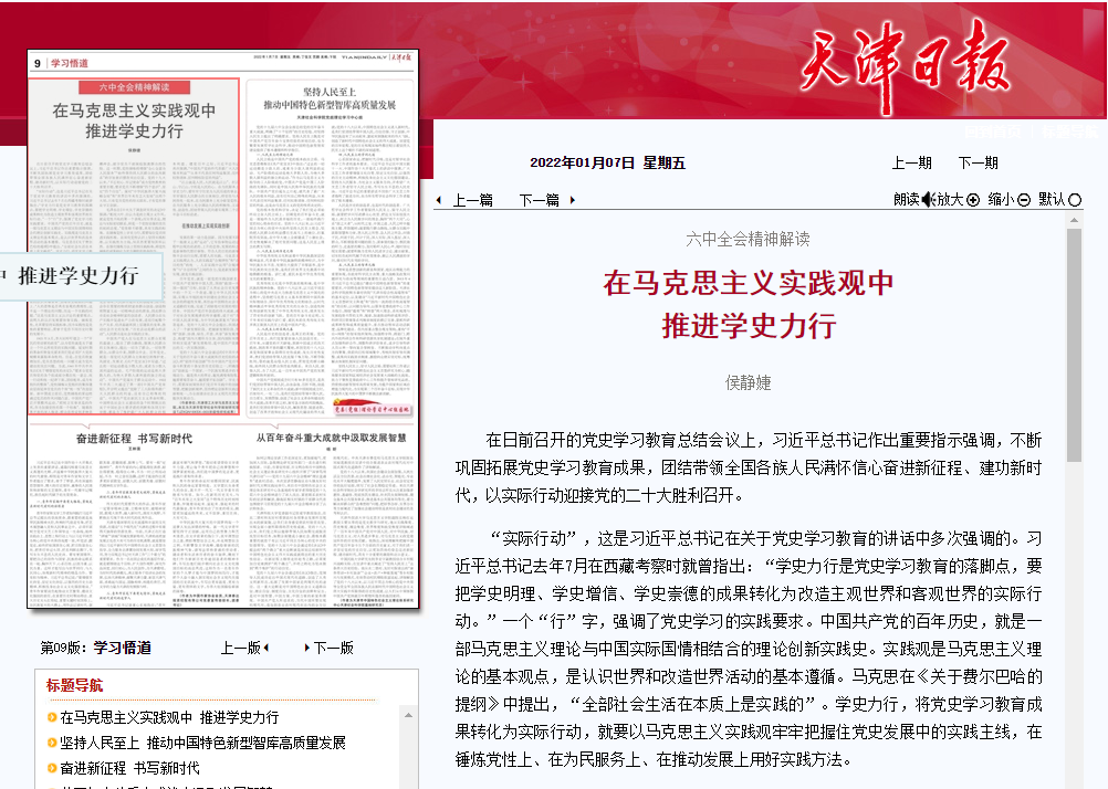 黨的十九屆六中全會通過的《中共中央關于黨的百年奮斗重大成就和歷史經驗的決議》,將“堅持開拓創新”作為中國共產黨百年奮斗積累的十條寶貴歷史經驗之一,明確指出“創新是一個國家、一個民族發展進步的不竭動力。越是偉大的事業,越充滿艱難險阻,越需要艱苦奮斗,越需要開拓創新”。學史力行,需要深刻領悟我們黨百年實踐中的創新智慧,把握創新規律,堅持理論創新和實踐創新相統一,為全面建設社會主義現代化國家提供發展動力。