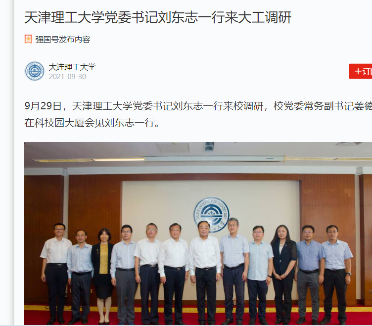 9月29日,我校黨委書記劉東志一行在大連理工大學調研,大連理工大學校黨委常務副書記姜德學在科技園大廈會見劉東志一行。
