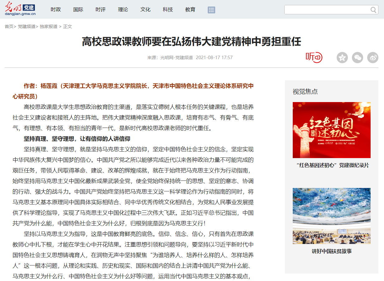 《光明網》——高校思政課教師要在弘揚偉大建黨精神中勇擔重任