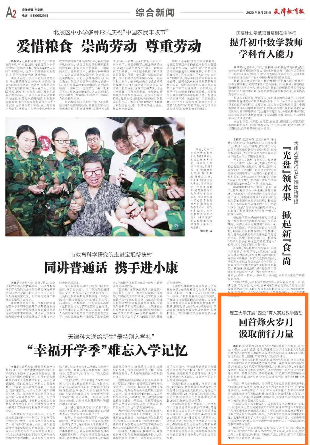 近日,天津教育報對我校開展“四史”育人實踐活動教學活動進行了報道,全文如下:
