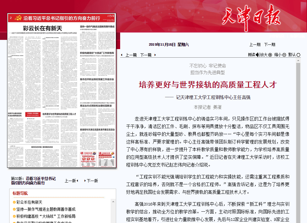 高強2016年來到天津理工大學工程訓練中心后,不斷探索“新工科”理念與實訓教學的結合,推動全方位的教學改革。一方面,主動對照國際標準,向國際先進的工程實訓基地看齊,引進社會力量助推中心發展,先后與12家企業共建實驗室、9家企業合作開展產學研一體化實踐基地建設,為學生實習實訓集聚了優質的設備資源和先進的技術資源。另一方面,扎實推進中心改革,成功引入“6S”(整理、整頓、清掃、清潔、素養、安全)的管理理念,持續改善教育教學環境和硬件條件,實現了教學管理的標準化、規范化。