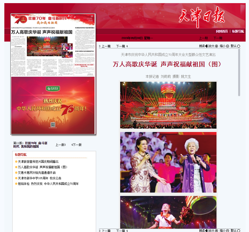 天津市慶祝中華人民共和國成立70周年大會大型群眾性文藝演出