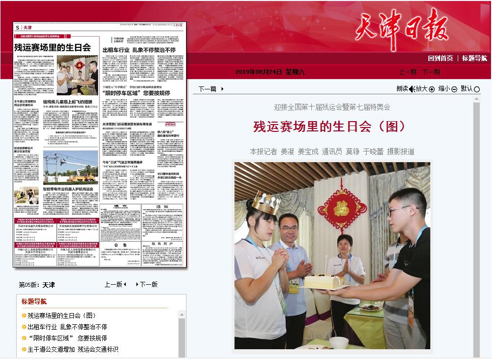 迎接全國第十屆殘運(yùn)會(huì)暨第七屆特奧會(huì)殘運(yùn)賽場(chǎng)里的生日會(huì)(圖)