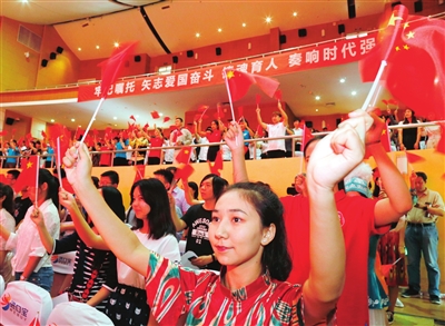 “我和我的祖國,一刻也不能分割,無論我走到哪里,都流出一首贊歌……”報告會最后,全場師生情不自禁地揮起手中的國旗,一起合唱《我和我的祖國》,歌聲響徹整個禮堂……