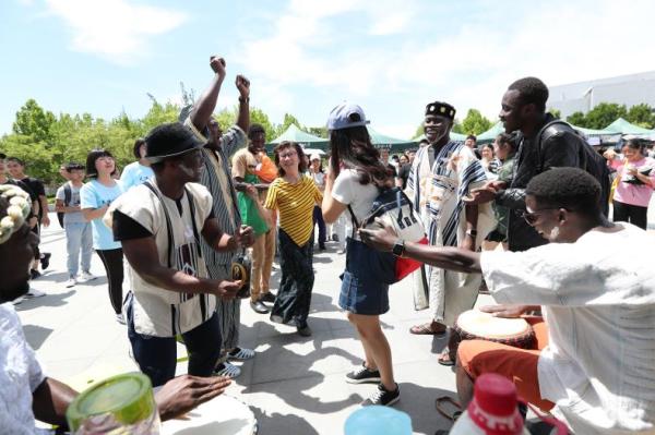 5月22日中午,天津理工大學“傳承文明,溝通世界”第六屆世界文化日在學校舉行,來自20多個國家的300余名中外學生參與其中。