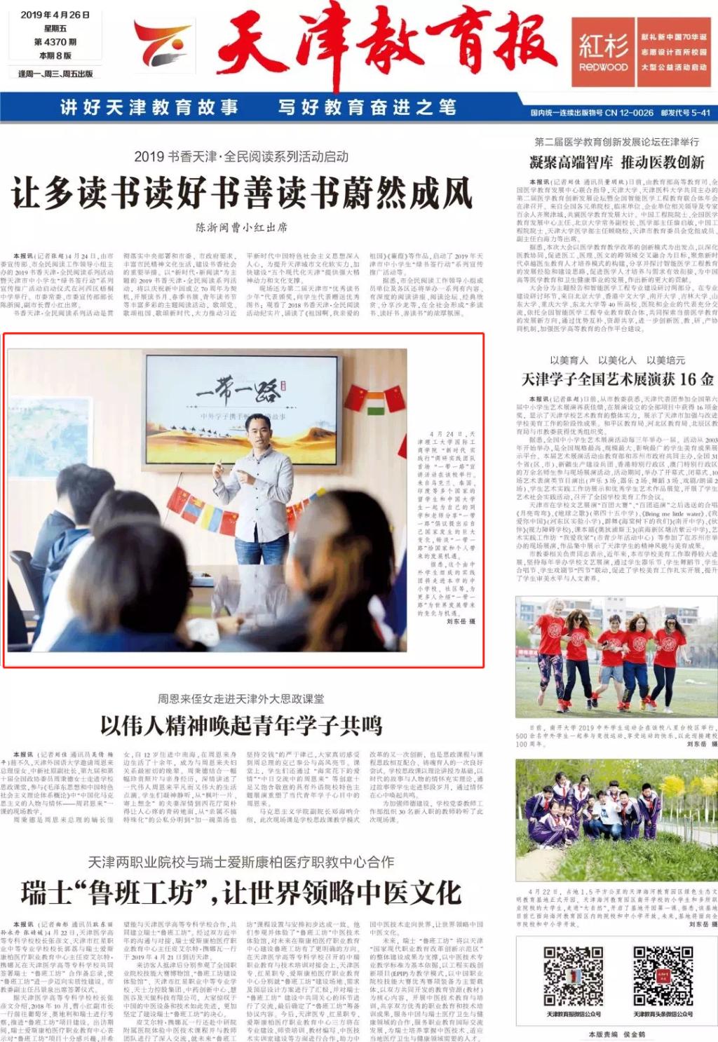 4月24日,天津理工大學國際工商學院“新時代 新踐行”調研實踐團隊首場“一帶一路”宣講活動在該校舉行。來自烏克蘭、泰國、印度等多個國家的留學生和中國大學生一起為自己的同學和老師分享“一帶一路”倡議提出后自己國家發生的巨大變化,暢談“一帶一路”給國家和個人帶來的發展機遇。